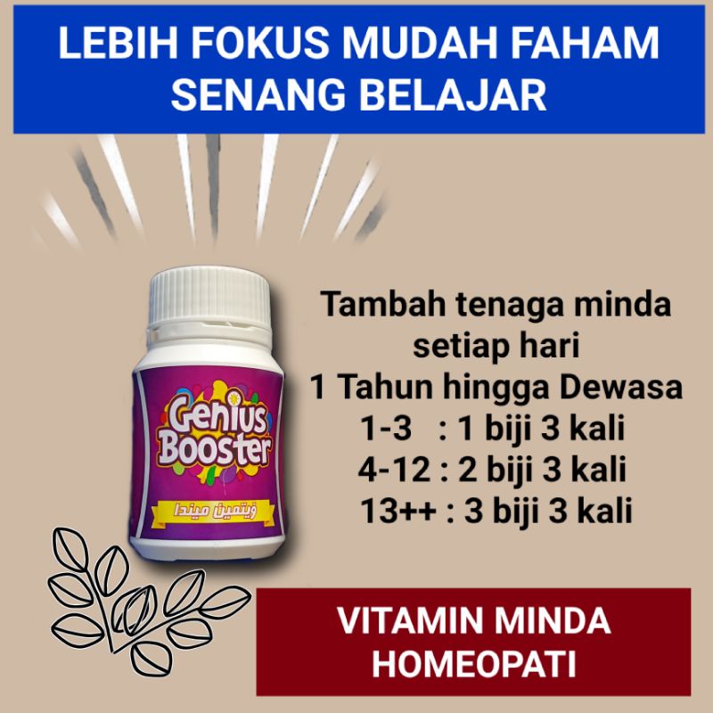 Vitamin Minda Homeopati Genius Booster Tenaga Tambahan Untuk Meningkatkan Fokus Dan Kekal Cergas Anak Dan Dewasa Shopee Malaysia